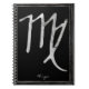Stylized hammered silver Virgo astrology zodiac birthday symbol in a hand drawn silver fine double line frame. This notebook or dream journal or writing pad has Virgo text in a fine script, which can be personalized to narrate your own story.