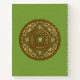 This mandala was designed for the zodiac sign, Virgo, depicting a peridot stone in the center surrounded by elements representing the sign, such as the symbol for the sign, the constellation, and the alchemical symbol for Earth, as well as filigree vines and weaves wrapping it all into a solid image in shades of light green, copper, and brown.