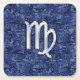 Virgo Zodiac Sign on Navy Blue Digital Camouflage Square Paper Coaster