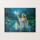 Virgo Zodiac with Moonlit Maiden Holding a Glowing Jigsaw Puzzle