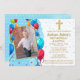 Virtual 1st Birthday Baptism Blue Gold Text Photo Invitation