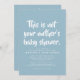 Modern times call for a modern baby shower invitation. If you're taking the party online due to social distancing, this is a perfect invitation for you. The bold playful text reads "This is not your mother's baby shower" and the party details below include room for online social meeting information, registry, shipping info and more along with the party details. The back features a coordinating playful dot pattern. The soft gray blue color is default, but it can be changed by clicking "customize further." Great for co-ed showers, adoption showers and two dad or two mom couple showers too - and anyone who appreciates your sense of humor and wit!