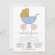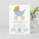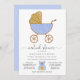 Virtual Baby Shower Retro Carriage Glitter Blue Invitation