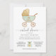 Virtual Baby Shower | Retro Carriage Green Gold Invitation