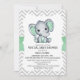 Virtual Green Elephant Chevron Glitter Baby Shower Invitation
