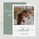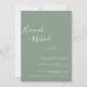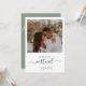 Rustic minimalistic design features modern script , botanical floral leaf with photo, and sage green on back of card. Easily personalize your information of choice. Ideal simple wedding invitation for a virtual online wedding.