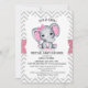 Virtual Pink Elephant Chevron Glitter Baby Shower Invitation