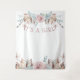 Virtual BOHO Shower Backdrop - Change text, font and color of text easily - match your invitations with this pretty virtual shower backdrop - Woodland botanicals of cotton and eucalyptus and a wild rose in subtle shades of tan country blue, sage green and rose pink - Original Design by © WhimsicalArtwork™