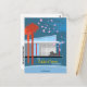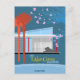 Travel style poster card in Mid Century Modern colors and elements.