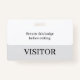 Horizontal Visitor's Pass badge in white and gray design. All elements are changable or removable. Elements include: Company name, Visitor (can say "guest" or "pass" or any word, the phrase "Return this badge before exiting," Slot at top for lanyard, but you can choose another option, such as a metal clip or retractable strap. Also available in vertical style in this store.