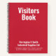 Visitors Book. Book for a company or business organisation to record visitors' names. Red colour.