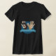 My overall review is that the T-shirt is nice, it fits true to size however the font is significantly smaller than advertised and you can't read it. The printing is unreadable and there is a strain to read it. It does not look like the advertised product. Maybe the shirt color is darker or a larger more visible font should have been used. Photos with and without flash and font is barely legible.