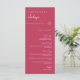 Check out this All-in-One Modern Menu Table Escort Place Card with Thank You for your wedding or party event! This menu card features a clean and simple block serif typography font and handwritten script in a viva magenta background. The simplicity and clean design of this menu works well with all wedding themes and definitely a great addition to your wedding and/or party event needs. You just customize and personalize the menu with the guest's name, their seating table number, and your menu. On the back, you enter in the newlywed/couple's names with thank you message for a personal touch from the newlyweds or hosts.