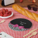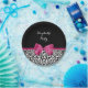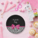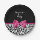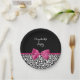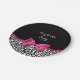 Trendy black and white leopard print paper plates with a vivacious dark pink ribbon tied into a cute girly bow. Personalize this chic and stylish animal pattern design by adding the name of your teen girl. Flat printed image, not actual ribbon.