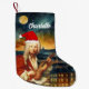 Perfect! Exactly what I ordered! I uploaded a picture of my blue chow, and the screen print was incredible. the back side of the stocking was the red and black checkered print. my puppy's name was also printed on the cuff of the stocking. PERFECT! Highly recommend this product! My puppy's name was screen printed onto the cuff of the stocking, the font was perfect!