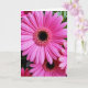 Designed with a close-up view of a single pink flower, the image fills the frame with layered petals that fan outward like an open embrace ❤️. The petals shift from rich fuchsia near the center to softer pink at the edges, and fine ribbed lines add a gentle, intimate texture. At the core sits a deep, nearly black center that feels like a quiet meeting place, ringed by tiny golden-tipped details that sparkle softly. The background falls out of focus into dark green leaves and faint hints of other blooms, like friends waiting nearby without stealing attention. Light lands softly across the petals, creating smooth highlights and tender shadows that make the bloom feel calm and inviting 🌼. There is no lettering anywhere on the design, leaving the flower to speak through color and closeness alone. The central disk shows concentric rings of small, raised dots encircling the dark middle.