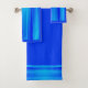 This bath towel set is created in a vibrant blue abstract stripe design.