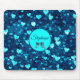 A pretty gift for someone special, this features a two-tone blue circle with a blue bow inside and text that you can personalize against a background of vivid hearts of different shades of blue.