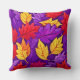 Vivid Cartoon Leaves: Purple, Yellow, Red Throw Pillow