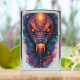 Brightly colored snake with glowing eyes, surrounded by a cosmic space-like atmosphere accented with vibrant highlights and starry elements, representing mystery, power, and universe.