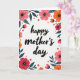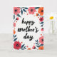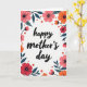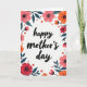 The front design shows a tall, white card with “happy mother’s day” centered in flowing black lettering, drawing your eye right away. A floral frame wraps around all four edges, like a gentle hug around the message ❤️. The flowers mix coral, soft rose, and orange tones, with light shading that gives the petals a tender, cared-for look. Teal leaves weave between the blooms, adding cool contrast that makes the warmer colors feel even more affectionate. Tiny orange-red dot clusters are sprinkled throughout like little confetti, adding texture without crowding the layout 🌼. Thin black lines radiate from the centers of the larger blossoms, echoing natural stamens and adding fine detail. The text sits in the open center space with generous white room around it, while the border stays close to the margins. The corners are filled with layered petals and teal leaves, with a few berry-like dots tucked near the outer edges.