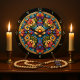 This striking wall clock features a beautiful stained glass design centered around a cross, adorned with an array of colorful, vibrant flowers and intricate leaf patterns. The brilliant hues and detailed artistry create an uplifting and captivating piece, perfect for adding a touch of faith and beauty to any room. Edit color of the clocks numbers in the Design tool to your favored colors.