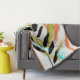 A quality printed throw has its advantages. This is a much finer weave throw than its loopier cousins, and though lighter, it is worth the investment for custom room accessorizing. The back is much prettier than the typical brown, and the fringe on the long sides very vivid, the selvage nicely done. Before photographing, I washed the throw in cold water, delicate, with a thicker woven throw the same size. On tumble dry low, this throw was dry in half the time as the other. This is a very practical quality if you use throws for furniture covers or to wrap up in frequently. The sleekness of the fabric makes it a great layer for accenting or protecting without the feeling of sitting on too much stuff. Perfect for napping or when you feel a light chill coming on. The color printing is beautiful and on this fabric, matched the design and color of my Photoshop image. This is an advantage for blending room fabrics and colors. The fringe on the short sides prints the colors from the design image and therefore varies from the side fringe. I streaked a white fractal line through the plaid pattern to give the illusion of weaving. This printed as crisp as an illusory thread, and put some white in the short side fringe, showing another advantage of print vs loomed- for artistic purposes, line lines, detail, and color integrity can be planned and preserved. My loomed throws have color limitations and more of a needlepoint texture. Print throws reproduce an exact image. The throw felt a little stiff straight out of the package, but this went away in the first delicate wash. Of course I searched the wash water for ink or bleeding and there was none.