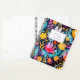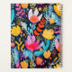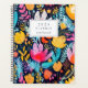Personalize this whimsical planner with your name in dark blue italics framed by a white rectangle, on a bold, colorful background pattern of hand-painted floral and botanical elements in shades of turquoise, pink and yellow.