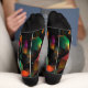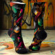 Step into a world of dynamic design with these vivid hexagon socks. Featuring bold emerald, magenta, and gold gradients against a deep black background, this design merges geometric precision with radiant color contrasts. Perfect for bold fashion statements and contemporary aesthetics.