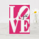 This card shows a hot pink background with the word “LOVE” stretched large across the front in soft, hazy white letters. The white letters look slightly out of focus, like a gentle glow that fills the whole card. Over the center of the “O,” the word “just” is written in small, neat black handwriting, so your eye goes straight to it. The simple contrast of white and black against the pink makes the message feel direct and close. It gives off a feeling of big affection with a quiet, personal note, like you’re saying it only to them 🥰. There aren’t any characters or extra objects, which keeps all the attention on the words and the feeling behind them. It’s meaningful to give because it can fit romance, a close friendship, or anyone you care about ❤️. Hope it helps you share your Valentine’s Day feelings in a sweet, honest way.