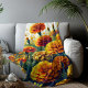 A summer throw sherpa fleece blanket depicting vivid colorful marigolds for flower lovers. Great gift idea for gardeners and flower lovers. This vibrant art design makes an attractive home decor accent piece for any room.