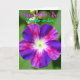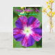 This card features a large morning-glory-style flower low in the center, its petals edged in deep purple that melt into hot pink and fuchsia streaks, drawing the eye inward like a gentle embrace ❤️. Near the middle, the color gathers into a glowing yellow-white center that feels like warm daylight shared between close family. A soft, out-of-focus green background keeps the scene calm and intimate, letting the bloom carry the affectionate mood. Across the upper area, the words “Happy Mother’s Day” appear in a flowing magenta style, floating above the flower without covering it. Just below that line, “Daughter-in-Law” is set in teal, slightly smaller, so it reads like a tender add-on meant for one special person 🌼. In the upper left, two small green buds lean toward each other, adding a quiet note of closeness and growing connection. The petals show fine textures and radiating lines, with pink streaks streaming from the bright center toward the darker purple edges.