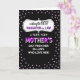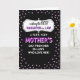 This card features a dramatic black background that makes the message stand out with high contrast and a warm, affectionate tone ❤️. A border of small pastel lavender hearts frames the entire design, like a gentle shower of love surrounding the words. In the center, a decorative white frame with a thin dark outline curls and loops around the main message, giving it an elegant, celebratory look. The opening line appears near the top inside the frame in thin white lettering with a soft shadow, leading the eye downward. The word “DAUGHTER” is placed prominently in the middle in bright magenta letters with a white outline, giving it extra emphasis. Below that, “MOTHER’S” repeats the same magenta-and-white treatment, while the remaining lines are set in crisp white text that feels like a tender note from someone close 👩. The overall layout feels like a loving exchange, with the hearts and flowing frame echoing a gentle closeness between family members. The lavender hearts continue evenly around all four edges, creating a complete border against the black background.