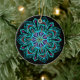 Vivid Neon Geometric Mandala on Black Bauble Ceramic Ornament