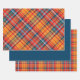 Vivid Orange, Red & Blue Plaid Wrapping Paper Sheets