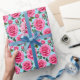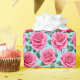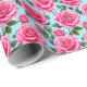 Vivid Pink Roses Patterned Against Wrapping Paper