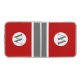 The background features a modern look with a vivid red, white and gray background and personalized monogram at each end.