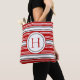 This tote bag design features a beautiful red, gray, & white striped pattern with a double circled monogram. Great for celebrating with team colors, or just every day summer fun. Makes a great gift. Created by Simply Farmhouse Press.