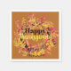 The design features a stunning watercolor wreath—a tapestry of yellow, gold, crimson, and pink brushstrokes—set against a rich, burnt orange/sienna background. This impressionistic foliage creates a warm halo around the holiday greeting: "Happy Thanksgiving," styled with a dark, classic "Happy" and a vibrant yellow script "Thanksgiving." The design is perfectly personalized with your family name underneath the wreath. These napkins are the customizable, high-style touch your Thanksgiving table setting needs, blending artistic flair with essential holiday practicality. They're a must-have for anyone searching for personalized autumn decor, watercolor holiday napkins, or customizable Thanksgiving table linens.
