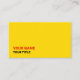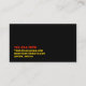 These business cards feature an all yellow face with red and black text. The back is black with red and yellow text, and has room for four lines of contact information. The design is meant to be simple but eye catching.