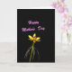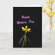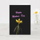 This card shows a single glowing yellow flower rising from a deep black background, like a quiet gift offered in the dark ❤️. The petals open wide and smooth, their sunlit color softened by the surrounding shadow, creating a gentle, affectionate mood. At the center, a tight cluster of burgundy and golden-brown tones adds texture and depth, like a warm secret held close. A slim green stem stretches downward with a few thin trailing strands, giving the bloom a slightly untamed, natural look. Near the top, a short message sits centered in flowing pink lettering, standing out clearly against the black. The pink text feels light and tender beside the flower, as if the words are leaning in toward it like a close friend. The overall layout is simple and focused, with lots of open dark space that makes the bright colors feel intimate and calm 🌼. The yellow blossom fills the lower half while the pink message floats above it, both sharply defined against the velvety black field.