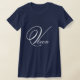 My overall review is that the T-shirt is nice, it fits true to size however the font is significantly smaller than advertised and you can't read it. The printing is unreadable and there is a strain to read it. It does not look like the advertised product. Maybe the shirt color is darker or a larger more visible font should have been used. Photos with and without flash and font is barely legible.