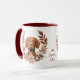 A pretty autumn wreath in tones of cinnamon brown, tan, and cream surround the watercolor image of a red Vizsla Dog. The image is printed twice on the mug, with your custom text between them.