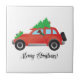 Vizsla Dog Driving a Christmas Car Tile