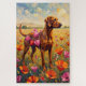 A photorealistic, warm-toned digital painting featuring a single sleek Vizsla standing in a sun-drenched poppy field, delicately carrying a string of bright, multicolored heart-shaped paper lanterns. A graceful and detailed Valentine's Day gift for Vizsla owners.