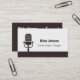 A silhouette icon design of a microphone in dark brownish black contrasting with white. On the reverse is musical notes. Great for anyone who is a vocal coach, singer or in the music industry. Personalize easily with your contact details in the easy to read text.
