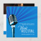 Graphic retro style chrome microphone graphics and vocal projecting lines with your own photo or photos on the reverse vocal recital invitations blue and white. Perfect to invite families and friends to voice, singing or open mic, musical or speaking recital event. Customize with your own event details. © Unique design and illustration by Sarah Trett for www.mylittleeden.com (back photo placeholder photo by Obie Fernandez on Unsplash).