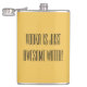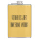 This flask says "Vodka is just awesome water!", the background color can be customized as can the text.