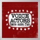 "Voice Actors Have More Fun" is a cute text design in red with black text, along with a white accent shape and white textured whimsical dots surrounding it.
