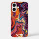 The colors of a volcanic eruption—purple, orange, yellow, pink flowing together to make a beautiful, marbled, melted pattern on this iPhone case.